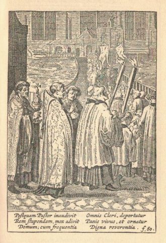 De priester vertelde zijn medebroeders over het mirakel en het verhaal verspreidde zich spoedig in de stad en het omgevende land. Toen de priester een processie vormde om naar het huis van de visser te gaan om de Heilige Hostie te halen, volgde een grote volksmassa hem en zijn medepriesters. Ze droegen de Heilige Hostie terug naar de Kerk van St. Nicholas en brachten de Heer de eer die Hij verdiende om het geven van zo’n groot geschenk aan deze nederige mensen.