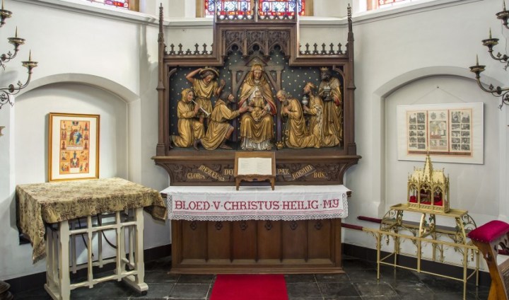 Dit mirakel gebeurde in 1380, toen priester Eligius Van den Aker in de Sint-Petruskerk van Boxtel de Heilig Mis aan het opdragen was. Eligius stootte per ongeluk op het Driekoningenaltaar de kelk om met het Heilig Bloed dat uit witte wijn was geconsacreerd. De corporaaldoek en de altaardoek werden met rode vlekken gekleurd.