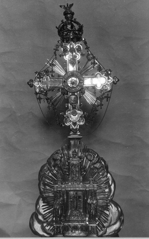 Het Augustijnerklooster van Leuven beschikte over een fragment van de communiedoek, waarop in 1374 een druppel bloed van de in Vlees veranderde Hostie was gevallen en het andere deel van de miraculeuze Hostie. In het begin van de 19e eeuw werden deze reliek en het kleine laat-14e-eeuwse reliekhoudertje gevat in een nieuwe grotere reliekhouder. Tijdens uitstallingen op het altaar en tijdens processies werd in deze reliekhouder, achter het Mirakel, een pas geconsacreerde Hostie geplaatst.